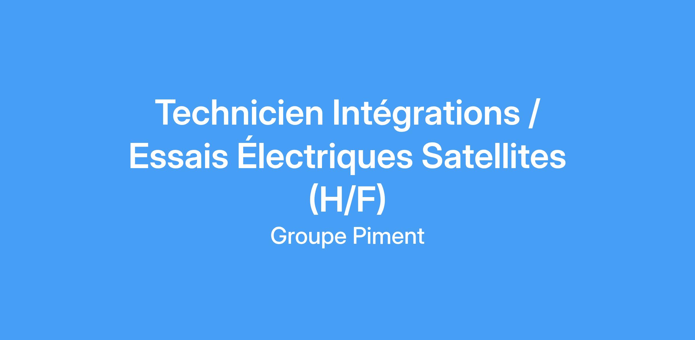 un(e) Technicien Intégrations / Essais Électriques Satellites (H/F). Vos missions principales seront: