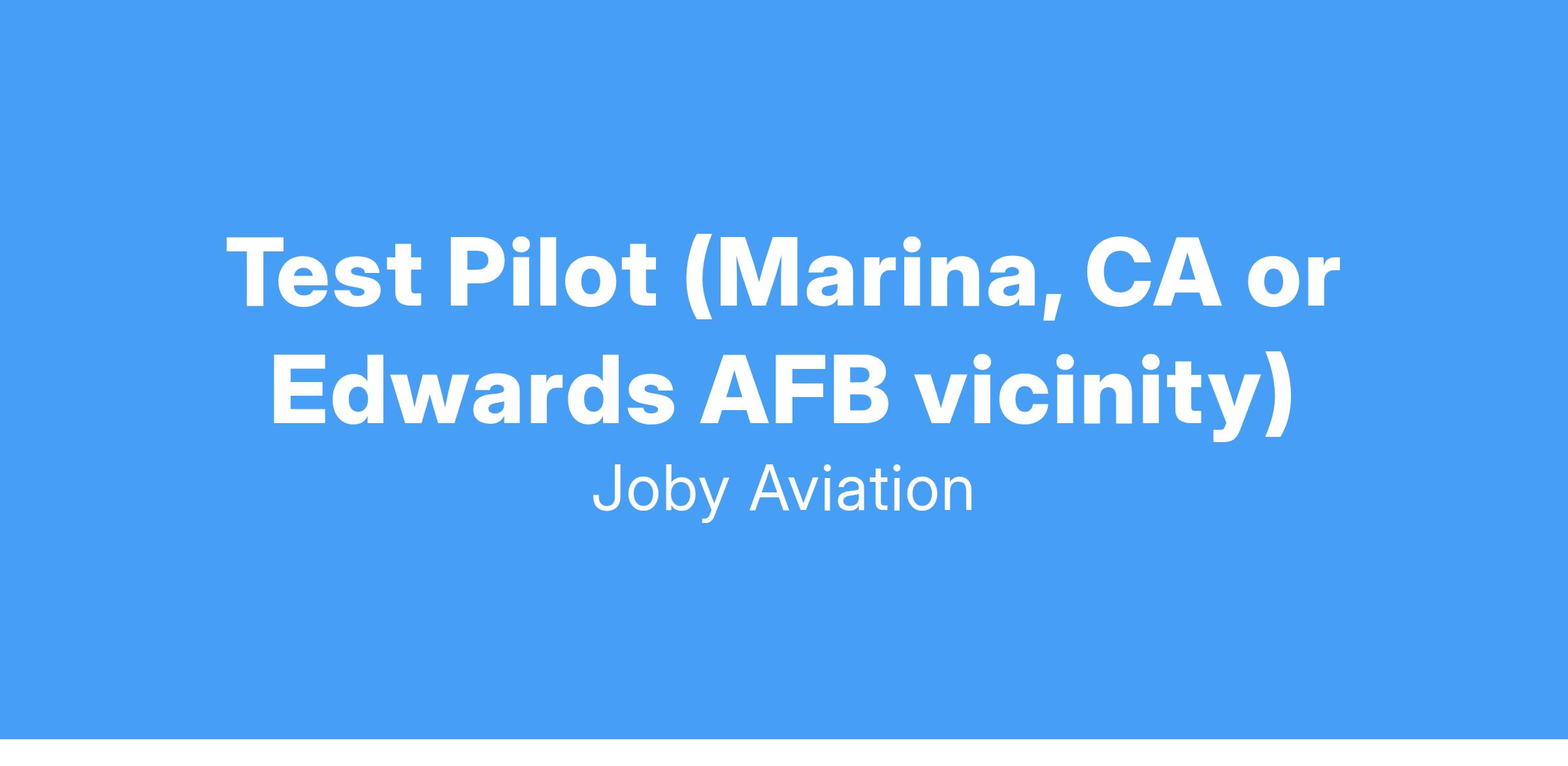 Joby Aviation is seeking a passionate and driven test pilot to join our flight test team. This role requires a wide range of knowledge and skill that includes planning and flight testing experimental CTOL/VTOL fly-by-wire aircraft and supporting all certification flight test related activities. Formal test pilot training and/or experience is essential, as is flexibility in outlook to adapt core flight test principles to a radically new aviation environment. Either or both VSTOL and DER or AR qualification is desired.