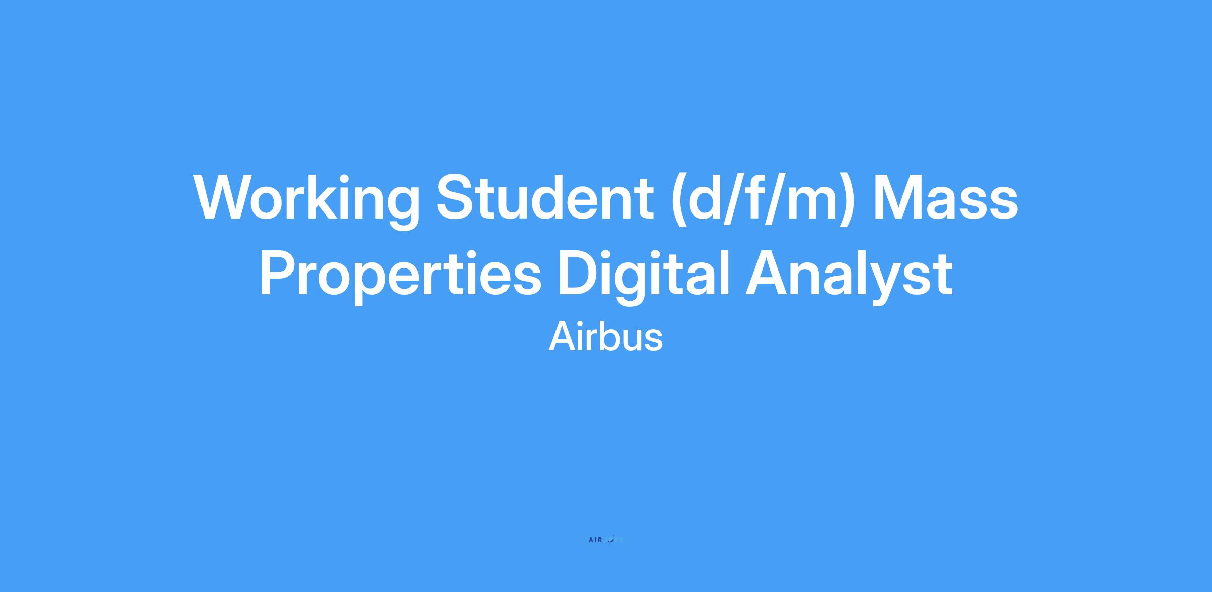 You are a full time student, looking for a working student position and want to get to know the work of Airbus? Then apply now! We look forward to you supporting us in the Mass Properties Operations team as a working student (d/f/m) with approx. 18 hours a week!